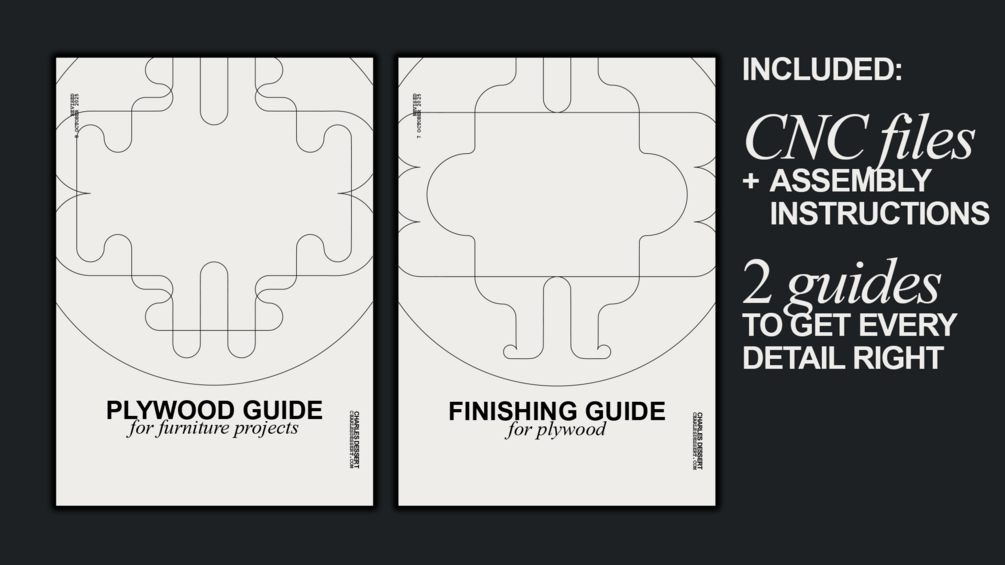 CNC-ready DXF file, assembly guide, plywood guide, finishing guide.